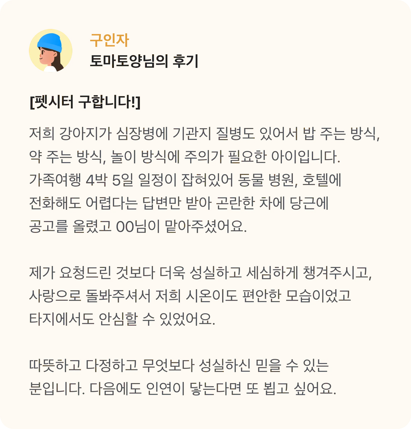 반려동물을 돌봐줄 사람이 필요할 때