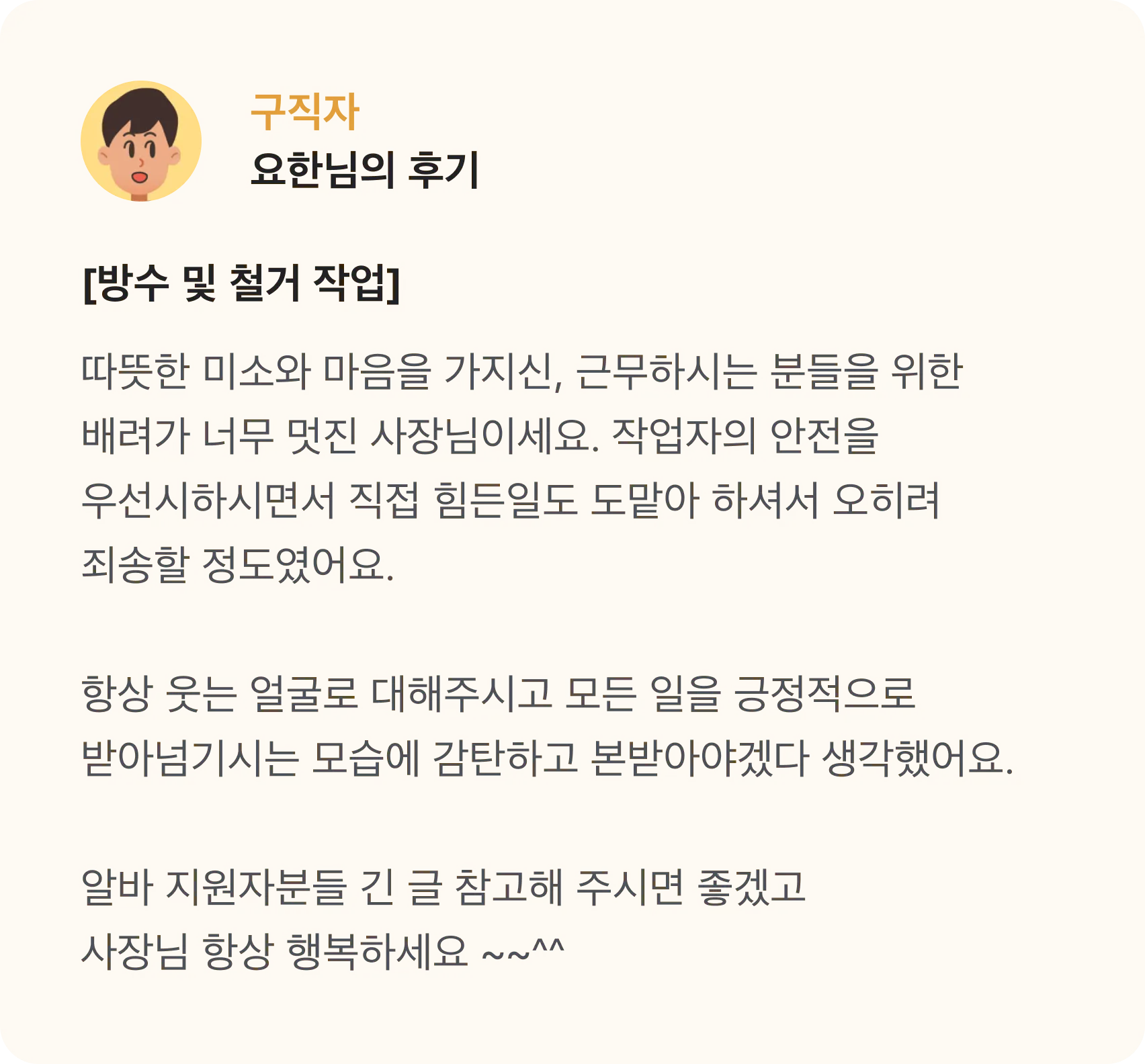 구인/구직 후기를 서로에게 전하고